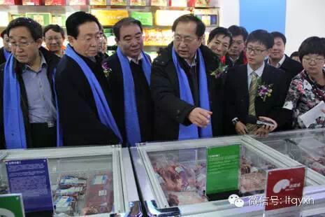 精品馆馆长杜勇为王玉明副主席、郭健厅长一行介绍肉类产品展区
